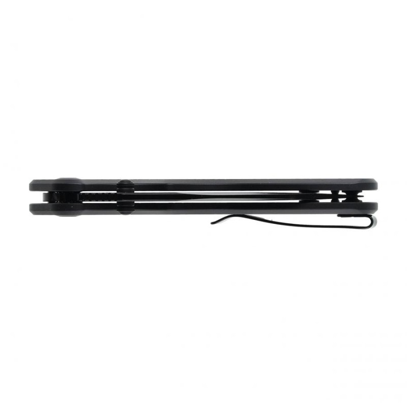 Nóż składany został wyposażony w ostrze o profilu Drop Point wykonane ze stali nierdzewnej 9Cr18MoV oraz czarne aluminiowe okładziny. Oferuje aż trzy sposoby otwierania — obustronny kołek, Flipper oraz wygodną w użytkowaniu blokadę Button Lock.