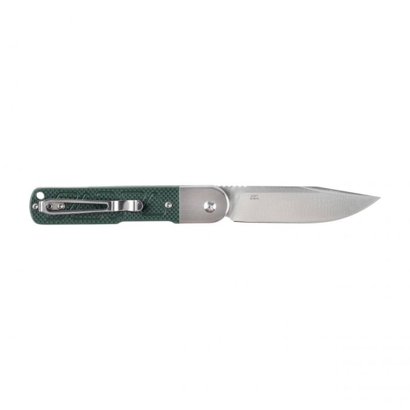 W konstrukcji noża dużą rolę odgrywa rękojeść, od niej bowiem zależy komfort oraz bezpieczeństwo użytkowania. W Ganzo G767-GB zastosowano stalowe linersy z okładzinami z tworzywa. Kratkowana tekstura chwytu powoduje, że nóż pewnie i wygodnie leży również w mokrej lub zmarzniętej dłoni. Stalowy klips Deep Carry (tip down, bez opcji przełożenia na drugą stronę) ułatwia dyskretne noszenie noża w kieszeni.