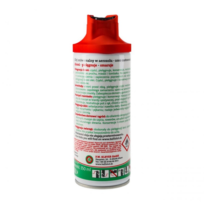 Ballistol Spray 350 ml to naturalny olej do pielęgnacji metalu, tworzywa sztucznego, skóry oraz drewna.