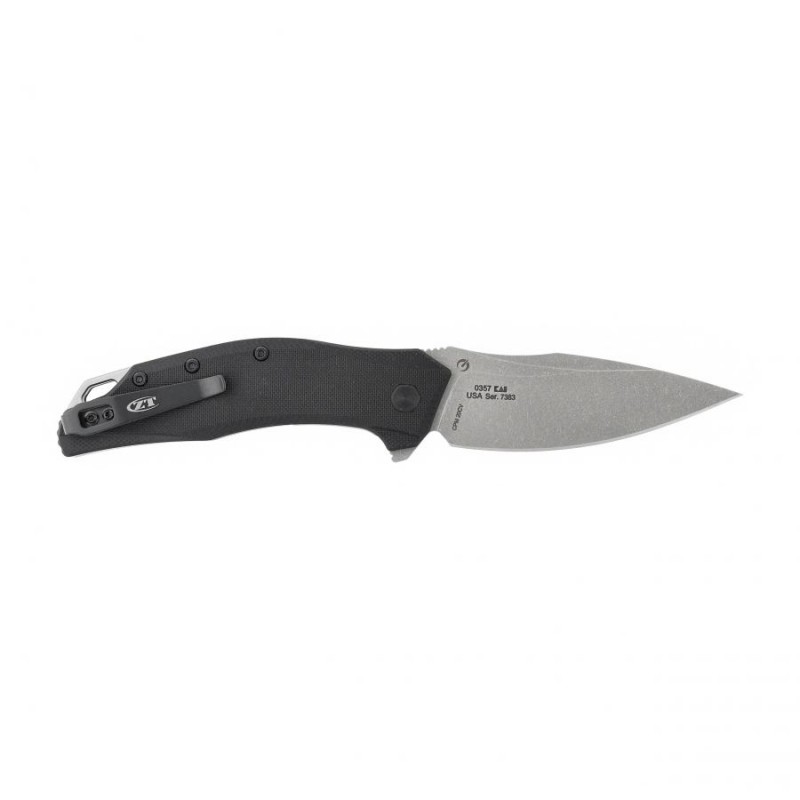 Nóż składany Zero Tolerance otwiera się przy pomocy jednej ręki – wystarczy nacisnąć na frezowany flipper, który zapewnia błyskawiczne rozłożenie klingi i jest komfortowy zarówno dla lewo, jak i praworęcznych użytkowników. Mechanizm wspomagający SpeedSafe natychmiast reaguje na naciśnięcie płetwy, zapewniając błyskawiczną gotowość noża Zero Tolerance ZT-0357 do pracy. Okładziny wykonane z popularnego laminatu G-10 są odporne na przetarcia oraz uszkodzenia mechaniczne, a przy tym także stosunkowo niewiele ważą, dlatego nie zwiększają w znacznym stopniu masy całego noża składanego Zero Tolerance. W użytkowaniu pomaga także klips.