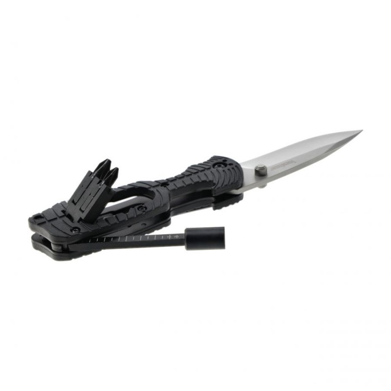 Select Fire 1920 to wielofunkcyjny nóż składany, wyposażony w głownię ze stali 8Cr13MoV, zestaw 4 bitów, miarkę oraz ramię z gniazdem do mocowania końcówek.