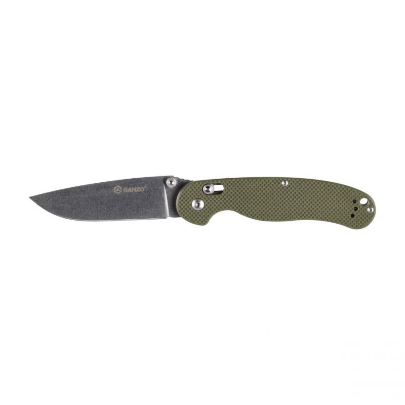 Ganzo D727M-GR to wszechstronny nóż edc, wyposażony w głownię ze stali narzędziowej D2, wygodną blokadę g-lock, teksturowane okładziny G10 oraz obustronny kołek umożliwiający błyskawiczne rozłożenie ostrza jedną ręką