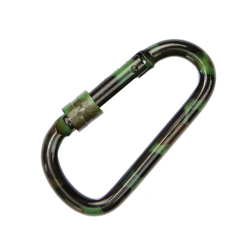 Karabinek w kamuflażu będzie służył do łatwego i szybkiego troczenia drobnego ekwipunku, kiedy nie mamy czasu na schowanie go w plecaku lub torbie.