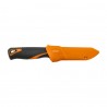 Polecany dla wędrowców, myśliwych, wędkarzy, survivalowców i wszystkich miłośników aktywności na świeżym powietrzu. Wersja z rękojeścią w kolorze czarnym z pomarańczowymi elementami.