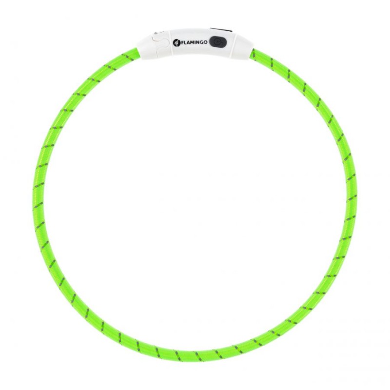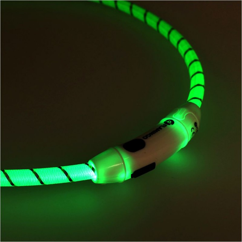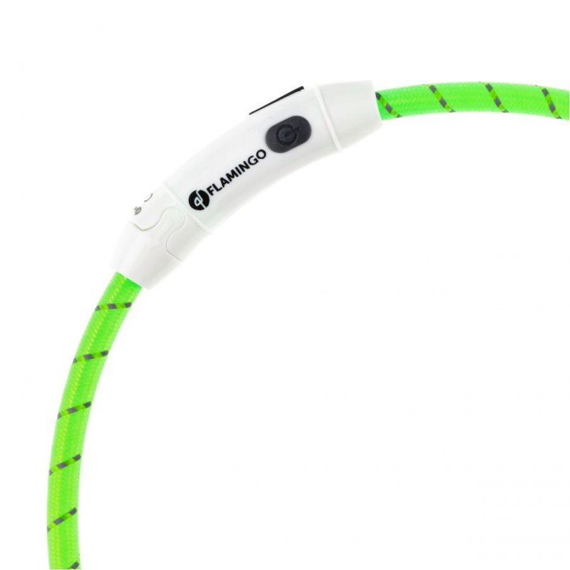 Obroża dla psa LED Leora Nylon w kolorze zielonym od firmy Flamingo powstała z myślą o bezpiecznych spacerach z czworonożnymi towarzyszami. Obroża posiada aż trzy tryby świecenia, dopasowane do preferencji, a widoczna jest do 500 metrów.