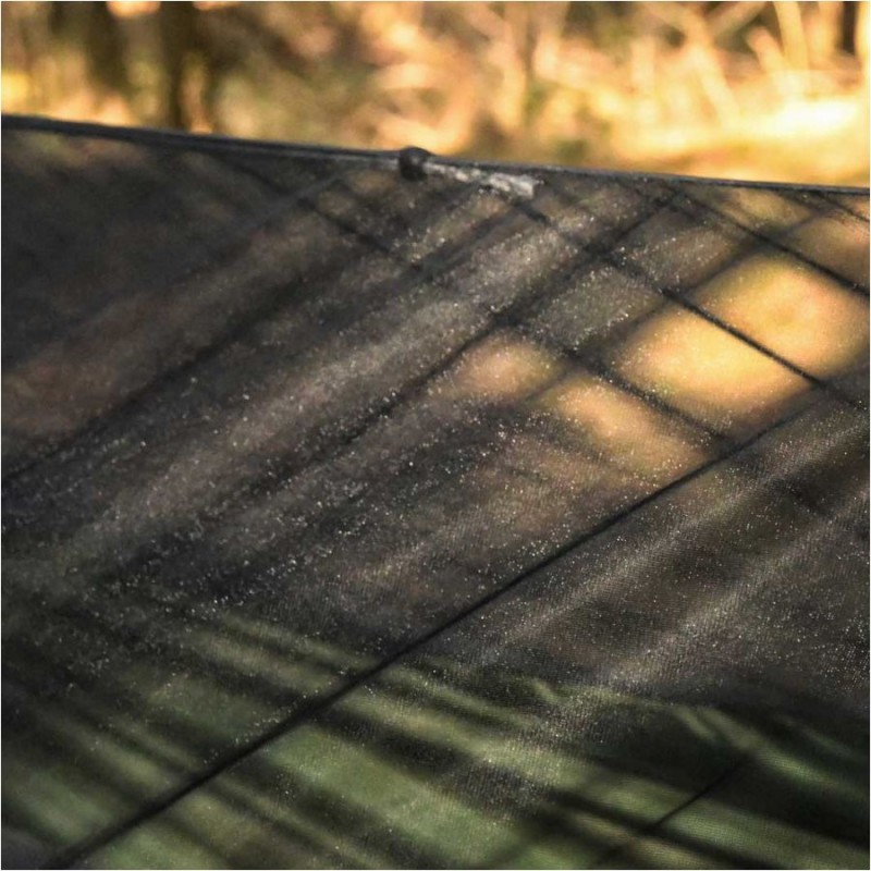 Hamak TigerWood Ważka V1 został wykonany na bazie nylonowej tkaniny łączącej w sobie wszystkie cechy, których oczekujemy podczas nocowania w terenie. Materiał charakteryzuje się wysoką odpornością na rozciąganie, dzięki czemu bez problemu utrzyma ciężar do 230 kg. Charakteryzuje się przy tym niską masą oraz dobrą oddychalnością, dzięki czemu będzie komfortowy zarówno w transporcie jak i podczas użytkowania. Umieszczona na boku hamaka kieszonka umożliwi przechowanie pod ręką kluczowych akcesoriów. Zintegrowana moskitiera została natomiast wyposażona w cięciwy, które pozwalają na jej odpowiednie napięcie dla komfortu użytkownika.