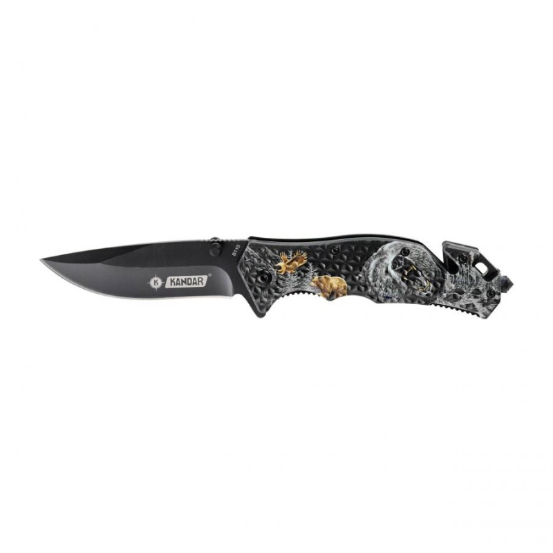 Folder Kandar N378 można traktować jako nóż ratowniczy. Producent wyposażył go bowiem w nóż do cięcia pasów i zbijak do szyb. Oba narzędzia umieszczono w dolnej części rękojeści. Można tu również znaleźć otwór na sznurek lub linkę.