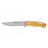 Przytwierdzone do rękojeści okładziny wykonano z drewna oliwnego. Ergonomiczne profilowanie rękojeści oraz umieszczone na grzbiecie ostrza karbowane podparcie zapewnia pewny i bezpieczny chwyt.
