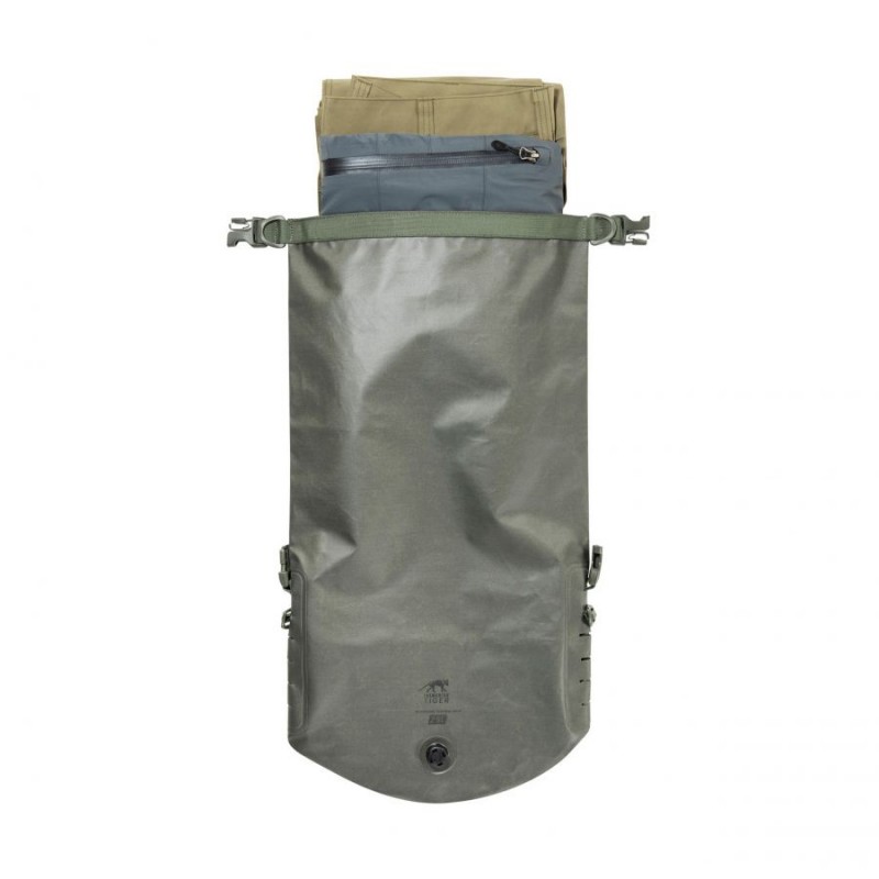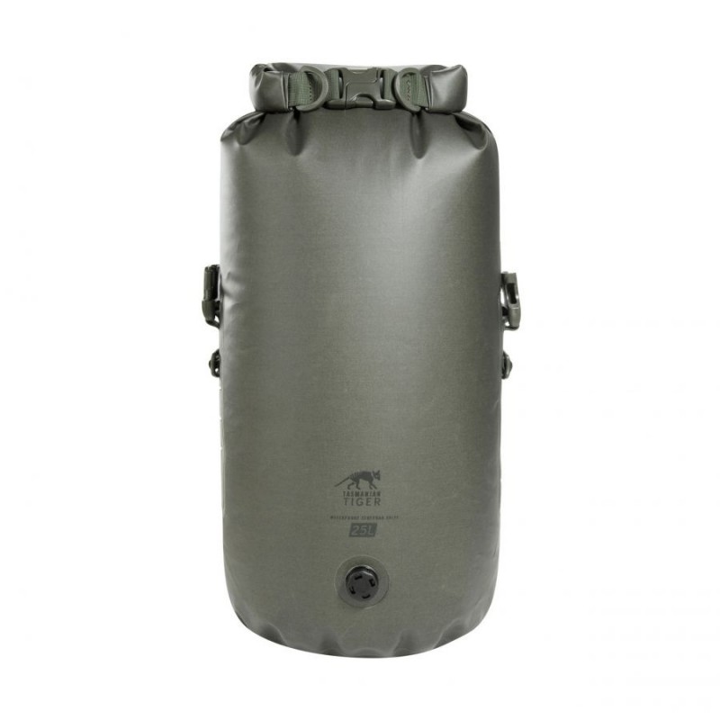 Wodoodporny worek Tasmanian Tiger Stuffbag WPV o pojemności 25 litrów wykonano z nylonu 420D, materiału odpornego na rozdarcia i niekorzystne warunki atmosferyczne. Materiał spełnia również normę IP64, co gwarantuje pełną ochronę przed pyłem i lekkim deszczem. Dodatkowa powłoka DWR chroni zawartość przed wilgocią.