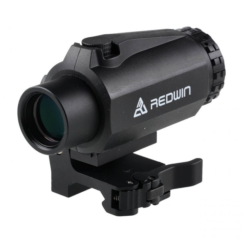 Powiększalnik Redwin ma okular pozwalający na wygodne ustawianiem ostrości, co umożliwia błyskawiczne dostosowanie obrazu do aktualnych warunków. Powiększalnik wyposażono w taktyczny uchwyt z klapką, umożliwiający szybkie odchylanie urządzenia na bok, co pozwala na natychmiastowy powrót do używania kolimatora.