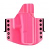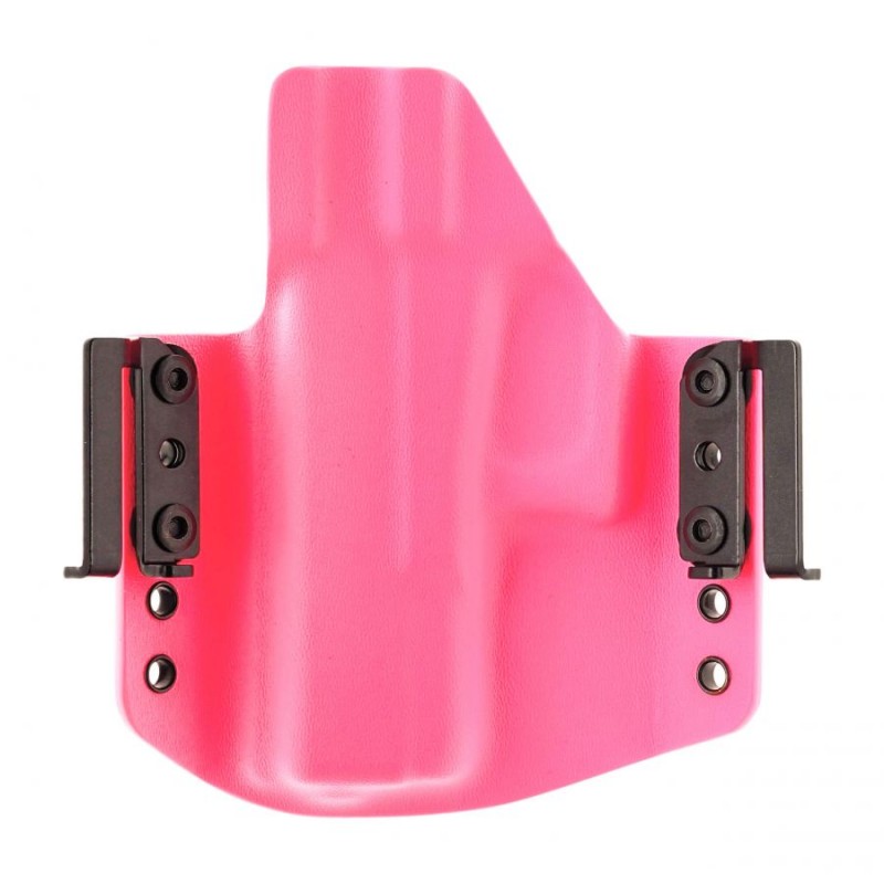 Omawiany model charakteryzuje się konstrukcją typu OWB (Over Waist Band) przeznaczoną do noszenia na zewnętrznej stronie pasa. Kabura tego typu gwarantuje wysoki komfort przenoszenia oraz możliwość szybkiego dobycia. W przypadku chęci wykorzystania w roli kabury EDC konstrukcja skutecznie dociska broń do naszego ciała, pozwalając na dyskretne przenoszenie jej pod obszerną koszulą, marynarką lub kurtką. Kabura OWB doskonale sprawdzi się również w taktycznych lub sportowych konfiguracjach pasa strzeleckiego - skorzystamy z niej zatem zarówno na strzelnicy, jak i w codziennym użytkowaniu. Zwielokrotnione porty montażu szlufek pozwolą nam na ustalenie pionowej pozycji kabury.