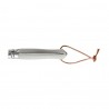 Nóż ma głownię o długości 70 mm, wykonaną z modyfikowanej stali nierdzewnej Sandvik 12C27M hartowanej do twardości 57-58 HRC. Dzięki domieszce chromu szwedzka stal jest odporna na działanie korozji i nie wymaga specjalnej konserwacji. 12C27M to czysty drobnoziarnisty stop o wysokiej zawartości węgla (min. 0,40%), który wyróżnia się dobrą odpornością na ścieranie, i satysfakcjonującą retencją. Dzięki takim parametrom ostrze długo zachowuje ostrość, jest odporne na korozję i zużycie, oraz łatwo się ostrzy. Klinga rozkładana jest dwoma rękami za pomocą wycięcia na paznokieć.