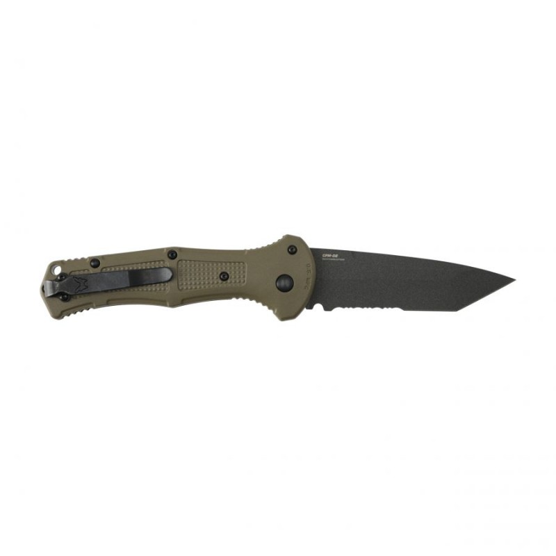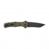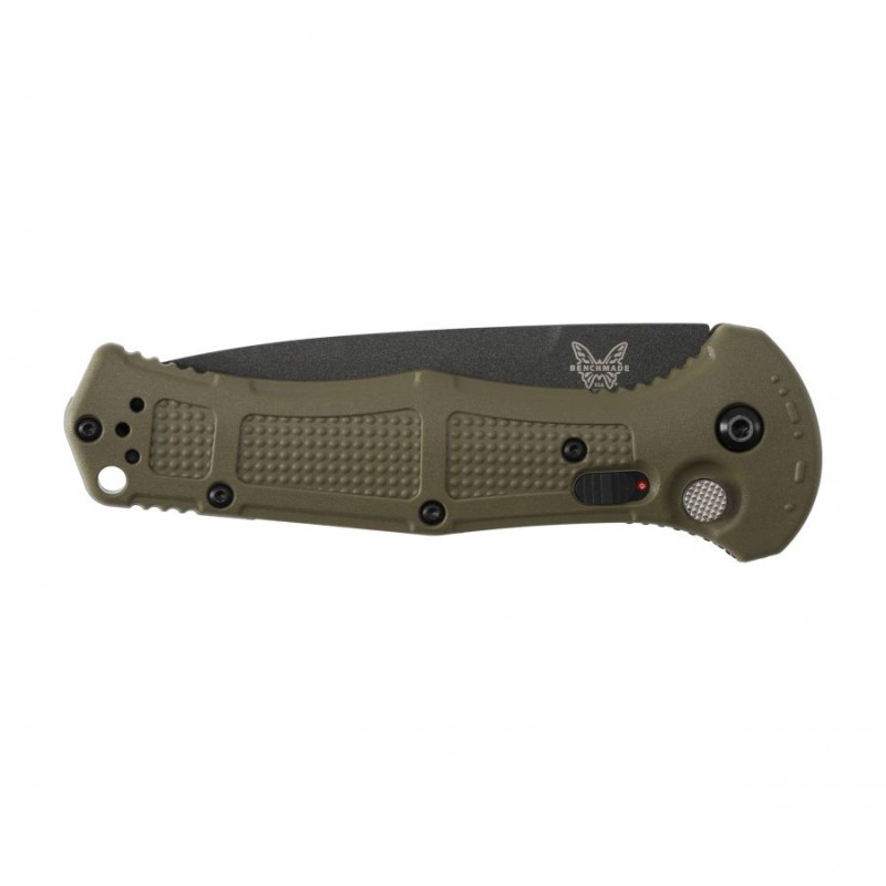 Benchmade 9071SBK Claymore ma profilowane okładziny z tworzywa Grivory w kolorze ranger green. Zastosowany laminat szklano-epoksydowy cechuje się niewielką masą, wysoką wytrzymałością mechaniczną, odpornością na wodę, zmianę temperatur, a także działanie wielu kwasów i rozpuszczalników.