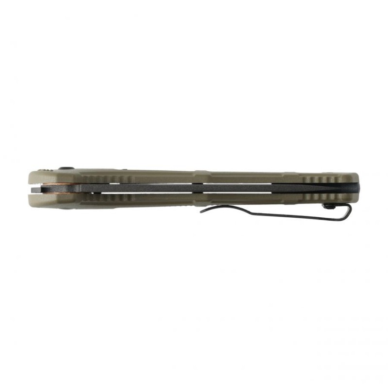 Rękojeść, która wyróżnia się nowoczesnym taktycznym designem, przede wszystkim zapewnia stabilny, wygodny i niezawodny chwyt. Rękojeść w centralnej części i u nasady noża jest szersza, a na jej powierzchni naniesiono moletowane wstawki, dzięki którym nóż praktycznie nie ma możliwości wyślizgnięcia się z dłoni. Aby zwiększyć niezawodność i wytrzymałość konstrukcji, w nożu zastosowano szkieletowe stalowe linersy. Dyskretne przenoszenie noża w kieszeni umożliwia wysoko osadzony klips z możliwością mocowania po dwóch stronach okładzin.