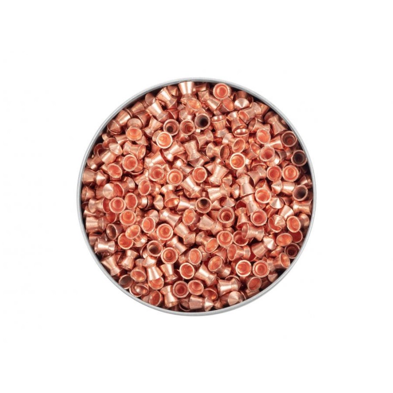 Produkt pakowany jest w praktyczny, zamykany aluminiowy pojemnik, co zapewnia łatwość przechowywania i transportu. Miedziowanie śrutu nie tylko zwiększa jego twardość, ale również ogranicza odkładanie ołowiu w lufie oraz zabrudzenie palców.