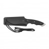 W zestawie z nożem otrzymujesz polimerową kaburę z zatrzaskiem oraz gwizdek ratunkowy wraz z zawieszeniem.