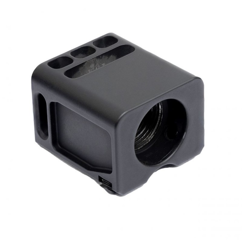 Kompensator LO-KICK do pistoletów 9 × 19 Para o gwincie 1/2 × 28 UNEF to wydajne urządzenie wylotowe, które znacząco zmniejsza odczuwalny podrzut i odrzut pistoletu, umożliwiając jednocześnie oddawanie celnych i szybkich strzałów.