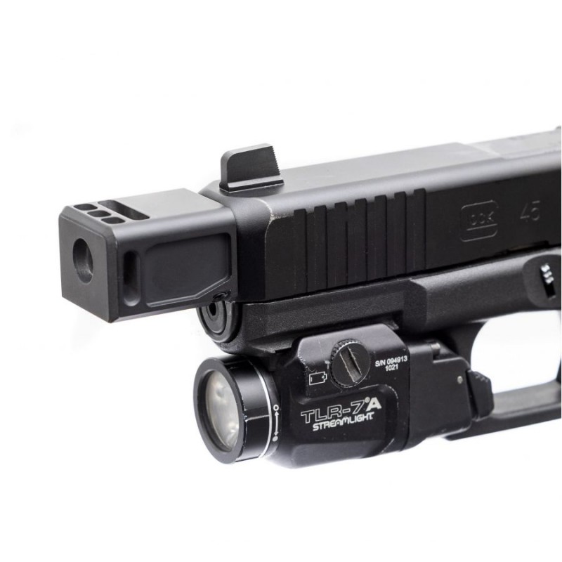 Konstrukcja kompensatora LO-KICK, w przeciwieństwie do pistoletów z portingiem lufy, ogranicza płomień wylotowy, pozwalając na komfortowe strzelanie w ciemności, z wykorzystaniem światła białego lub noktowizji.