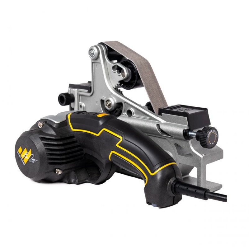 Kluczową rolę w procesie ostrzenia pełnią elastyczne, szerokie pasy ścierne (19 X 305 mm), które ostrzą praktycznie każdy kształt i typ ostrza z zachowaniem stałego kąta.