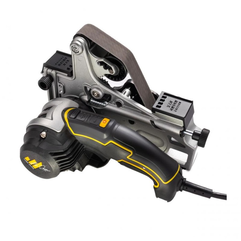W przystawce można stosować różnej gradacji pasy ścierne o rozmiarze 25,4 x 457 mm. Napięcie pasa jest kontrolowane poprzez system 4 rolek, regulowanych w zakresie od 10° do 35° (z dokładnością do 1°).