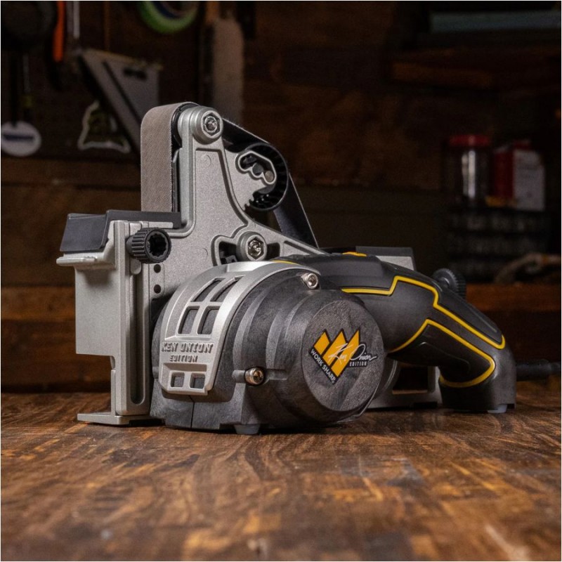 Ostrzałka Elektryczna Work Sharp Ken Onion Edition to niezwykle udany efekt współpracy specjalistów z Work Sharp oraz znanego twórcy noży Kena Oniona, odpowiedzialnego między innymi za wynalezienie systemu wspomagania rozkładania głowni "SpeedSafe".