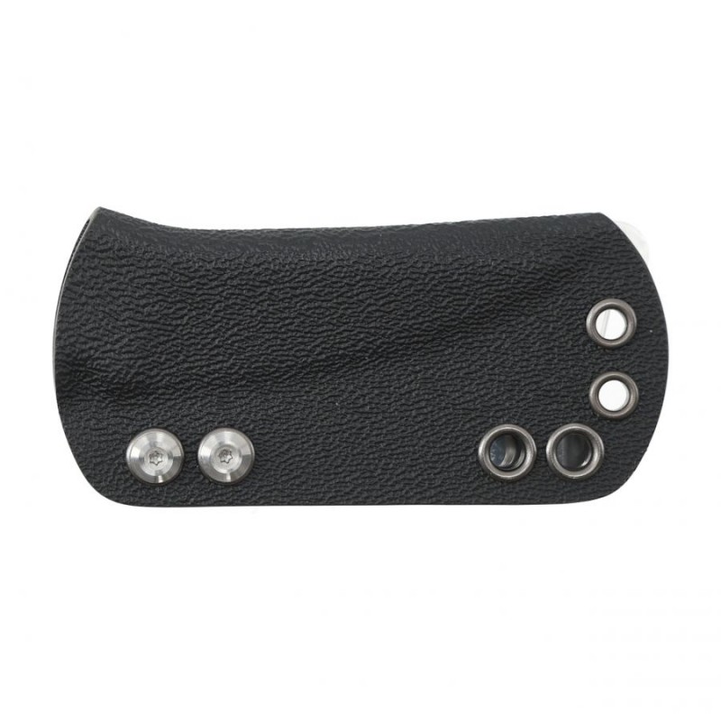W stalowej rękojeści wywiercono otwory umożliwiające oplecenie jej np. paracordem. Dolną część chwytu oraz fragment grzbietu pokarbowano, dzięki czemu nóż pewniej leży w dłoni i łatwiej nim manipulować. Do Civivi Circulus dołączono zawieszkę z tytanowym koralikiem oraz pochwę z kydexu z klipsem i łańcuszkiem na szyję.