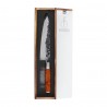 Pełnowymiarowy nóż szefa kuchni sprawdzi się wszędzie tam, gdzie praca wre - ta przeznaczona do wszelkiego rodzaju siekania konstrukcja sprawdzi się zarówno w szybkim przygotowaniu mięsa na gulasz jak i podczas intensywnego rozdrabniania pietruszki na chimichurri. Dzięki wydatnemu brzuchowi krawędzi tnącej operowanie nożem jest niezwykle łatwe i precyzyjne, a relatywnie długa głownia poradzi sobie również z filetowaniem dużych ryb czy wykrawaniem masywnych steków. Zastosowanie stali VG-10 zapewniającej dobre trzymanie ostrości połączone z niezwykle łatwym ostrzeniem i świetną odpornością na korozję gwarantuje niezawodną i przyjemną eksploatację. Konstrukcję dopełnia przyjemne wzornictwo łączące surową powierzchnię głowni z elegancką, drewnianą rękojeścią.