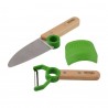 Opinel Le Petit Chef zawiera również obieraczkę, która jest również wyposażona w pierścień wspomagający. To praktyczne narzędzie umożliwia precyzyjne jak i bezpieczne obieranie warzyw.