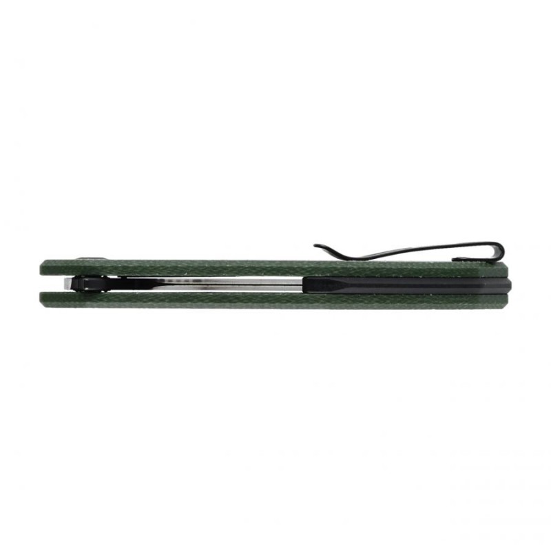 Okładziny rękojeści Civivi Bluetick wykonano z zielonej Canvas Micarty. Kompozytowego materiału z płótna prasowanego pod ciśnieniem z syntetyczną żywicą. Krawędzie okładzin są gładkie i zapewniają ergonomiczny, wygodny chwyt.