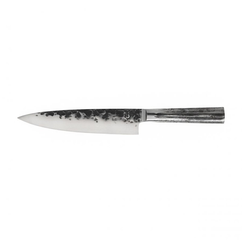 Pełnowymiarowy nóż szefa kuchni sprawdzi się wszędzie tam, gdzie praca wre - ta przeznaczona do wszelkiego rodzaju siekania konstrukcja sprawdzi się zarówno w szybkim przygotowaniu mięsa na gulasz jak i podczas intensywnego rozdrabniania pietruszki na chimichurri. Dzięki wydatnemu brzuchowi krawędzi tnącej operowanie nożem jest niezwykle łatwe i precyzyjne, a relatywnie długa głownia poradzi sobie również z filetowaniem dużych ryb czy wykrawaniem masywnych steków. Zastosowanie japońskiej stali nierdzewnej zapewniającej wysoką odporność na korozję połączoną z niezwykle łatwym ostrzeniem, co z kolei gwarantuje niezawodną i przyjemną eksploatację.Konstrukcję dopełnia stylowe, surowe wzornictwo linii Intense, obejmujące monolityczną konstrukcję wykonaną w całości z jednego kawałka stali.