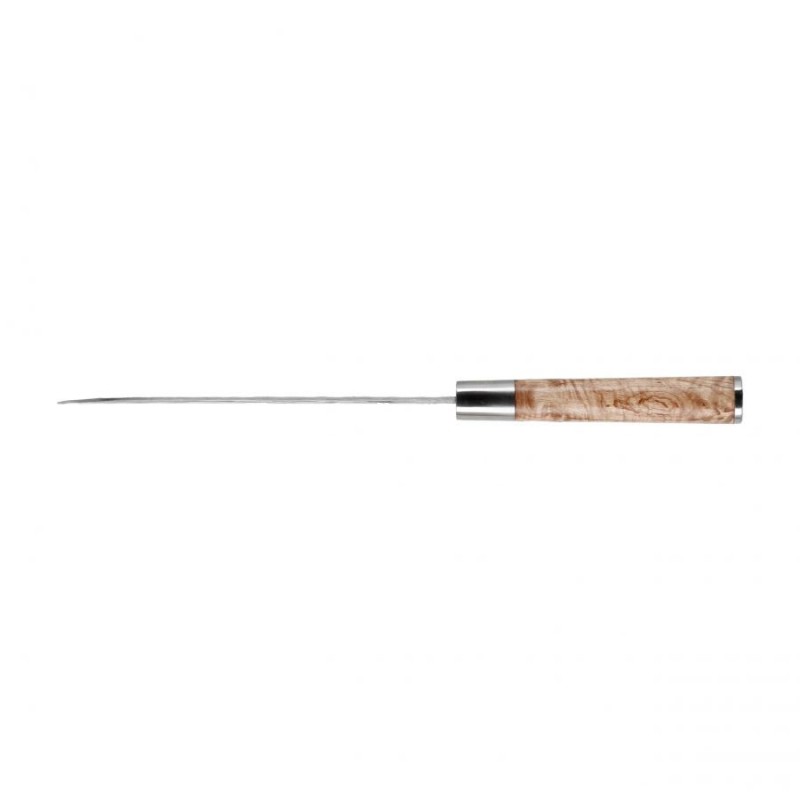 Noże typu Santoku są chętnie wykorzystywane przez szefów kuchni dzięki ich niezwykłej wszechstronności porównywalnej z europejskimi nożami szefa kuchni. Dzięki nieco mniejszym wymiarom pozwalają one na łatwiejsze manewrowanie i ograniczają zmęczenie nadgarstka. Nóż Santoku marki Forged łączy w sobie wszelkie zalety tej formy z zastosowaniem stali VG-10 zapewniającej dobre trzymanie ostrości połączone z niezwykle łatwym ostrzeniem i świetną odpornością na korozję. Konstrukcję dopełnia przyjemne wzornictwo łączące surową powierzchnię głowni z elegancką, drewnianą rękojeścią.