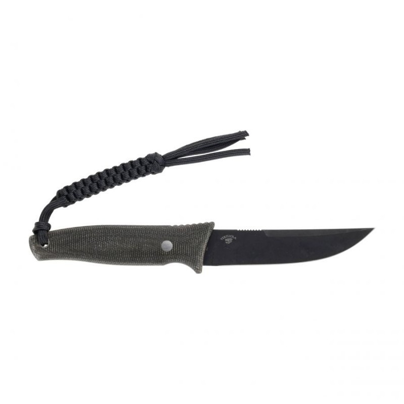 Dzięki wykończeniu Stonewash klingę zabarwiono na czarny kolor i pokryto nieregularnymi, drobnymi ryskami, które dobrze maskują kolejne zarysowania, powstające w trakcie normalnego użytkowania noża.