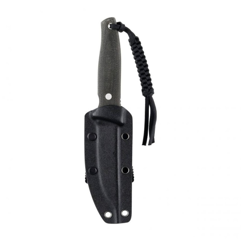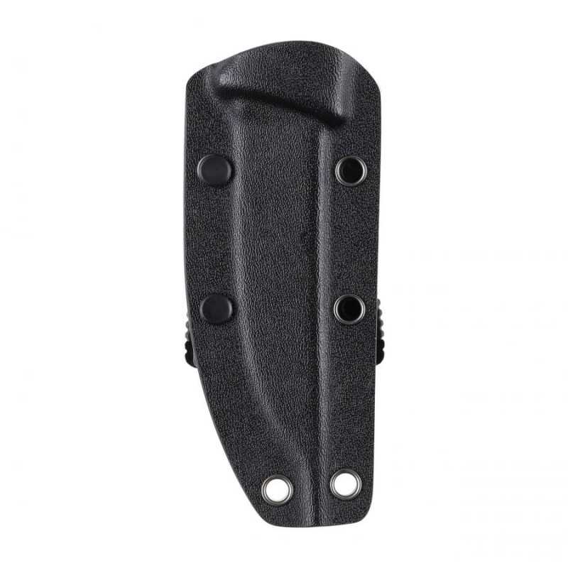 Wykonaną z czarnego kydexu pochwę wyposażono w klips T-Clip. Dzięki temu, po zamocowaniu do paska, można regulować jej położenie zarówno w płaszczyźnie poziomej, jak i pionowej, zależnie od indywidualnych preferencji.