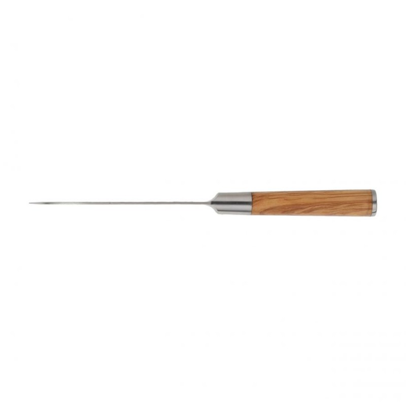 Noże typu Santoku są chętnie wykorzystywane przez szefów kuchni dzięki ich niezwykłej wszechstronności porównywalnej z europejskimi nożami szefa kuchni. Dzięki nieco mniejszym wymiarom pozwalają one na łatwiejsze manewrowanie i ograniczają zmęczenie nadgarstka. Nóż Santoku Forged Olive łączy w sobie wszelkie zalety tej sprawdzonej przez lata formy z doskonałym wyglądem łączącym młotkowaną strukturę głowni z charakterystycznym, wzorzystym drewnem oliwnym.