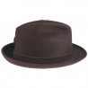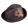 Kapelusz posiada wąskie, zawadiacko wywinięte rondo, chroniące przed deszczem. Oddychający filc gwarantuje dobrą cyrkulację powietrza oraz doskonałe dopasowanie. Koronę kapelusza ozdobiono otokiem z zaplecionych sznurków oraz splecionymi ptasimi piórami.
