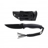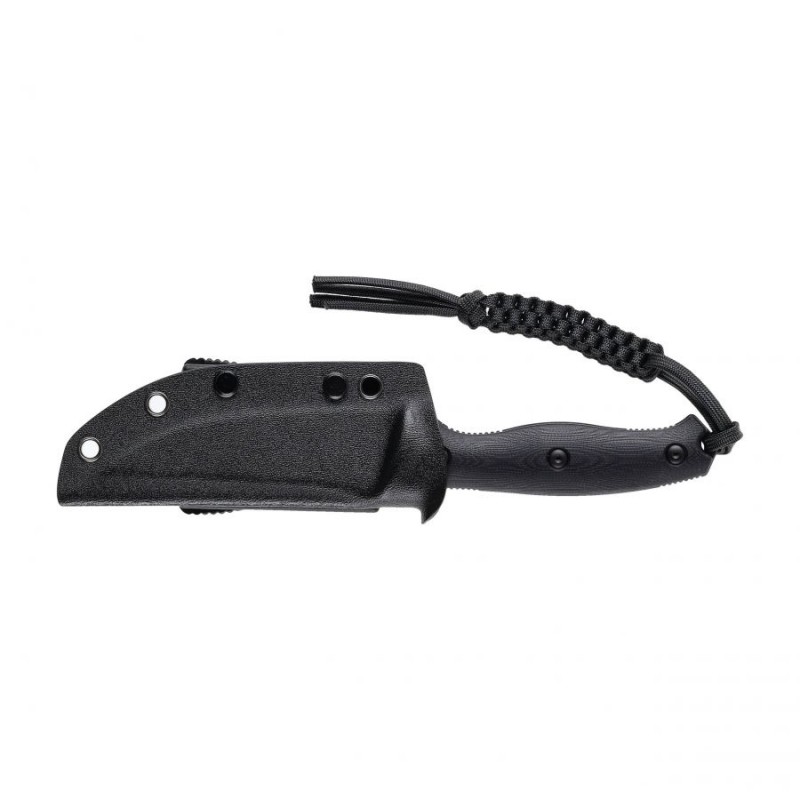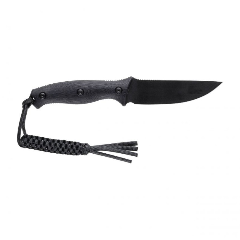 Rękojeść o ergonomicznym profilu otrzymała okładziny z laminatu G10. Ten niezwykle wytrzymały i odporny chemicznie materiał sprawdza się doskonale w każdych warunkach, oferując pewny chwyt oraz trwałość. W połączeniu z naniesionym na grzbiet noża jimpingiem gwarantuje on niezwykle stabilną pracę, nawet w mokrej lub brudnej dłoni. Polimerowa pochewka z regulowanym klipsem na pas jest niezwykle łatwa w utrzymaniu w czystości oraz co najważnejsze - skutecznie zabezpiecza nóż przed zgubieniem.