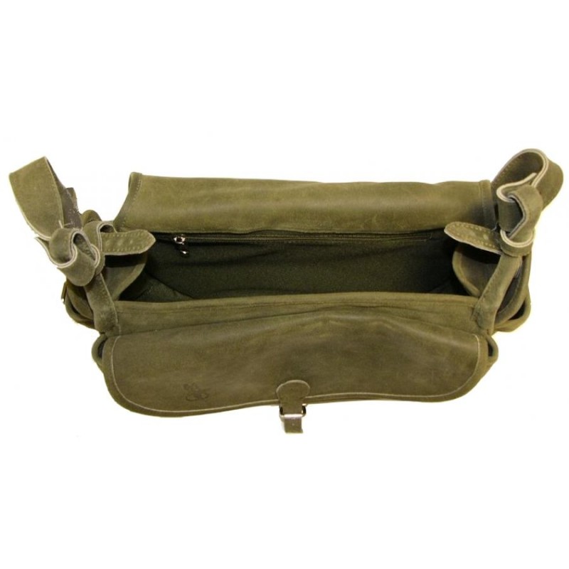 Polskiej produkcji duża torba myśliwska wykonana z naturalnej skóry. Wykonana bardzo dokładnie i świetnie odszyta. Torba posiada pasek o regulowanej długości. W środku znajduje się jedna przegroda, w której dodatkowo umieszczona jest zasuwana kieszonka. Na zewnętrznej stronie przegrody naszyta jest dodatkowa, zapinana na osobną klamrę kieszeń. Po bokach znajdują się dwie dodatkowe zapinane kieszonki. Torba o bardzo dużej pojemności, co potwierdzają użytkownicy – myśliwi :)