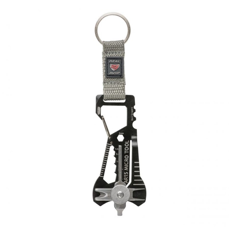 Wytrzymały, nierdzewny szkielet AR15 Micro Tool zawiera narzędzia do regulacji przyrządów celowniczych, rozkładania karabinka i zeskrobywania węgla z zespołu zamka i suwadła. Narzędzie można przypiąć do kluczy, plecaka lub torby na broń, aby zawsze mieć je pod ręką.