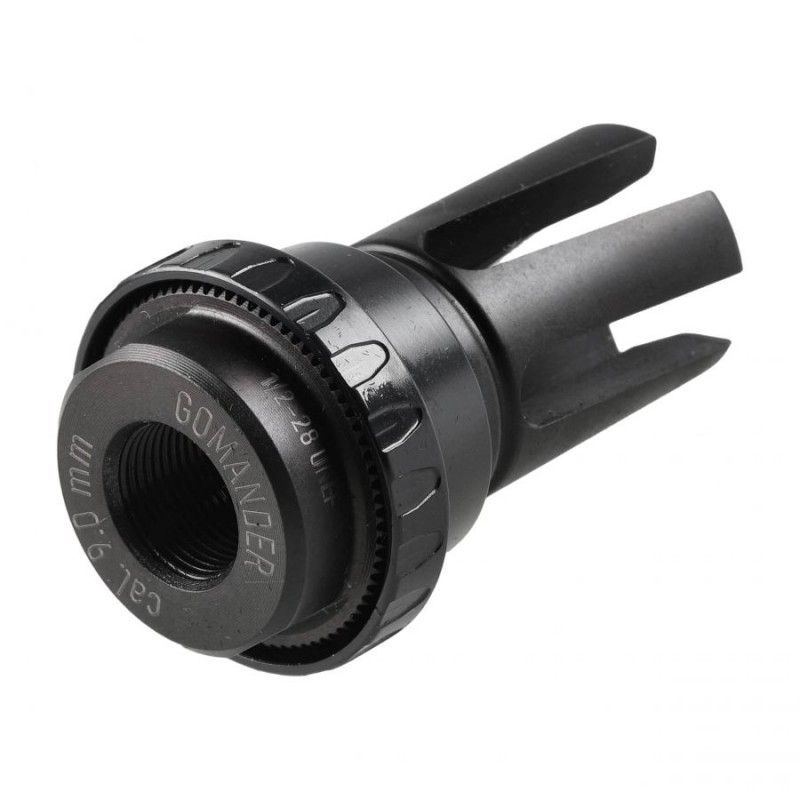Quadron 9.0 1/2 × 28 UNEF to zaawansowany kompensator płomienia, zaprojektowany przez polską firmę Gomander. Wykonany z wysokogatunkowej stali o zwiększonej odporności na wysokie temperatury, skutecznie redukuje płomień wylotowy, zapewniając większą stabilność oraz precyzję strzałów, nawet podczas intensywnej eksploatacji.