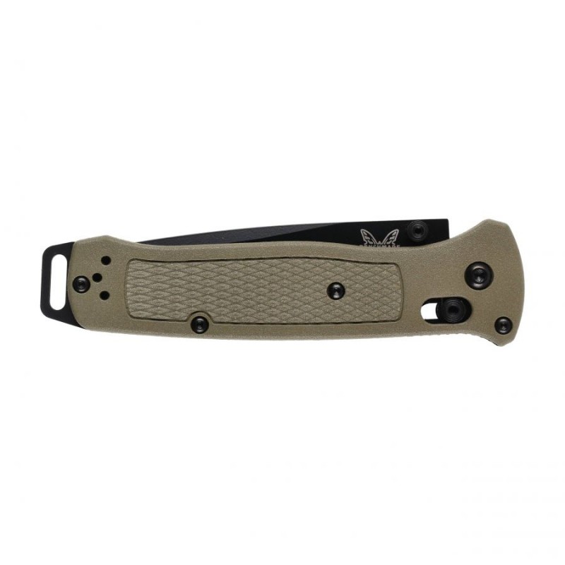 Benchmade Bailout został wyposażony w czarne oksydowane okucia, które dodają mu taktycznego charakteru i zwiększają odporność na ścieranie. Na zakończeniu rękojeści umieszczono aluminiową pętlę na smycz, umożliwiającą indywidualne dopasowanie noża.