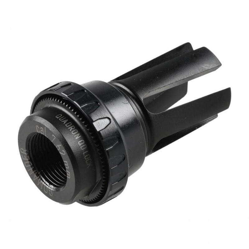 Quadron 7,62 mm 5/8 × 24 UNEF to zaawansowany kompensator płomienia, zaprojektowany przez polską firmę Gomander. Wykonany z wysokogatunkowej stali o zwiększonej odporności na wysokie temperatury, skutecznie redukuje płomień wylotowy, zapewniając większą stabilność oraz precyzję strzałów, nawet podczas intensywnej eksploatacji.