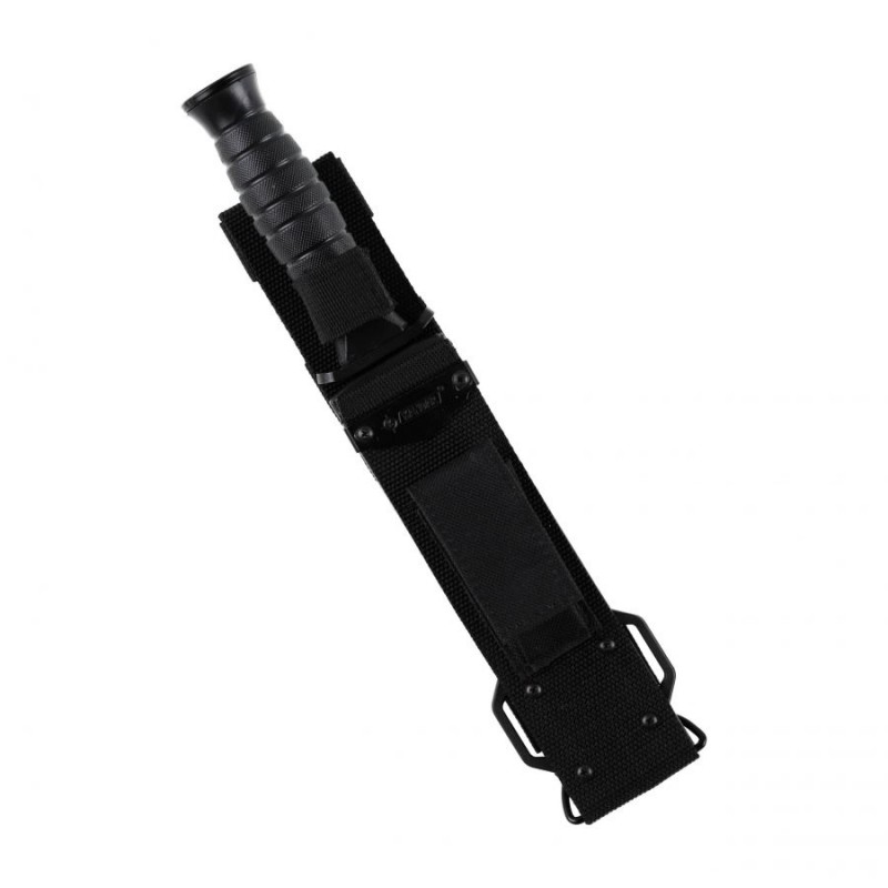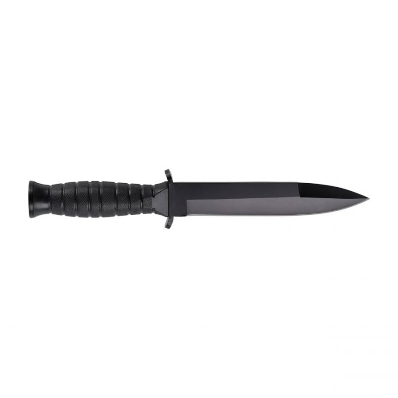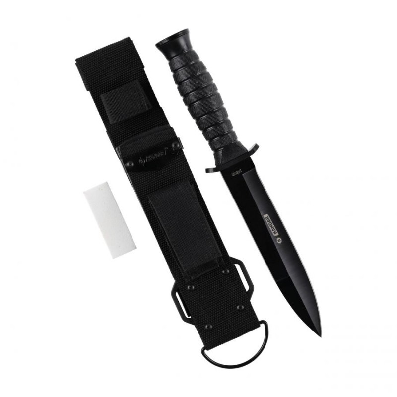 Kandar N-315 to nóż taktyczny z głownią o profilu spear point, wykonaną z oksydowanej stali nierdzewnej wysokiej jakości oraz z polimerową rękojeścią, która zapewnia doskonały chwyt i jest odporna na uszkodzenia mechaniczne. Wygięty jelec chroni dłoń przed przypadkowym zsunięciem na ostrze, a stalowa głowica rękojeści dodaje wytrzymałości całej konstrukcji.