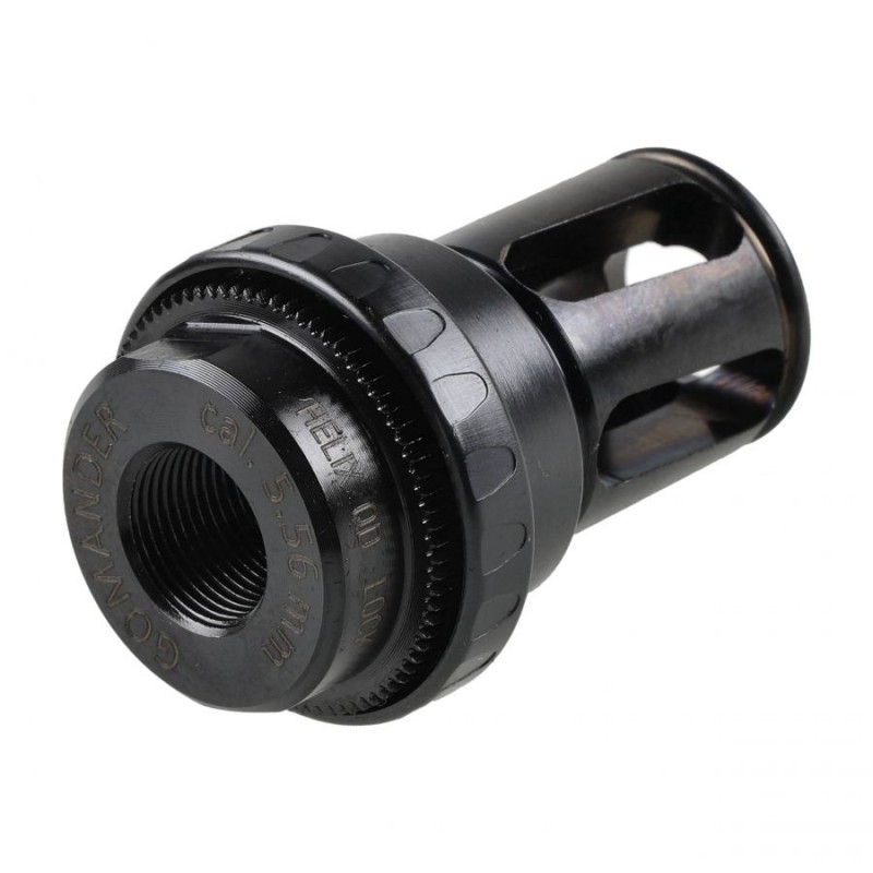 Helix 5,56 S 1/2 × 28 S to zaawansowany kompensator płomienia, zaprojektowany przez polską firmę Gomander, przeznaczony do karabinków platform AR i AK. Wykonany z wysokogatunkowej stali o zwiększonej odporności na wysokie temperatury, skutecznie redukuje płomień wylotowy, zapewniając większą stabilność oraz precyzję strzałów, nawet podczas intensywnej eksploatacji.