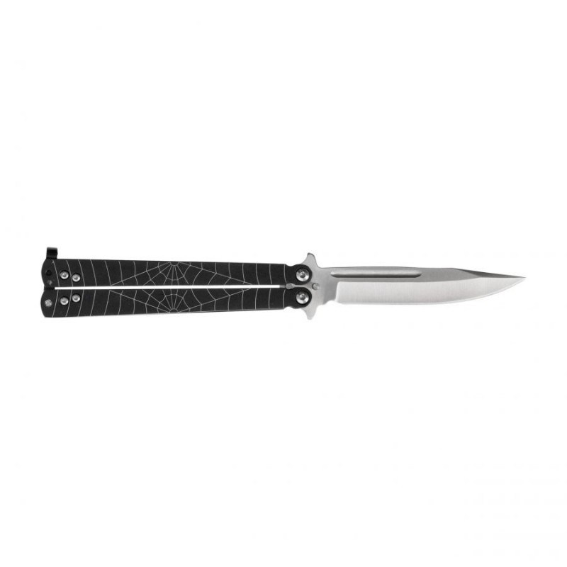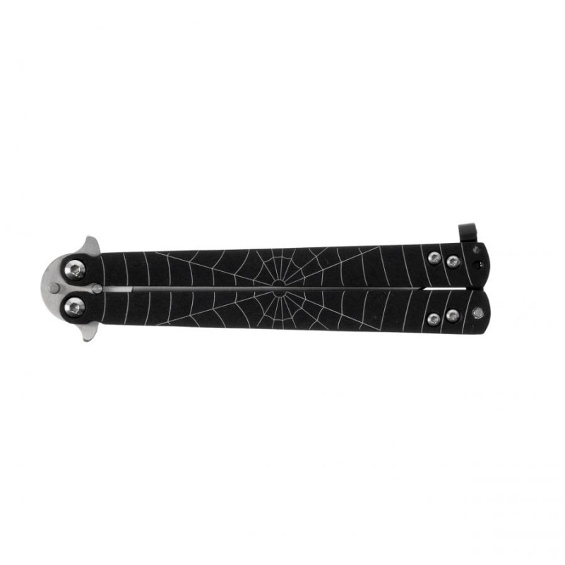 Nóż “motylek” hiszpańskiej marki Joker znanej na całym świecie ze swoich doskonałych wyrobów. Głownia o szlifie wklęsłym wykonana z mocnej stali nierdzewnej. Aluminowe rękojeści w kolorze czarnym z motywem pająka. Blokada rękojeści chroni przed niekontrolowanym rozłożeniem. Idealny do ćwiczeń trików, a także przydatny w turystyce, wędkarstwie, myślistwie itd. Całość zapakowana jest w ładne tekturowe pudełko co sprawia że nóż idealnie nadaje się na prezent.