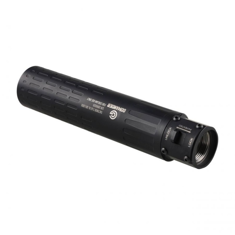 Gomander Tactinox QD Lock 7,62 XL M26×1,5 to najnowsza wersja tłumika, wyposażona w innowacyjny system szybkiego montażu i demontażu QD Lock z gwintem M26x1,5. System ten jest w pełni kompatybilny z hamulcem wylotowym Raptor oraz kompensatorami płomienia Helix i Quadron, co zapewnia wygodę i wysoką efektywność użytkowania. Nowoczesna konstrukcja tłumika nie tylko wyróżnia się estetyką, ale również optymalizuje odprowadzanie ciepła, zwiększając wydajność termiczną urządzenia.