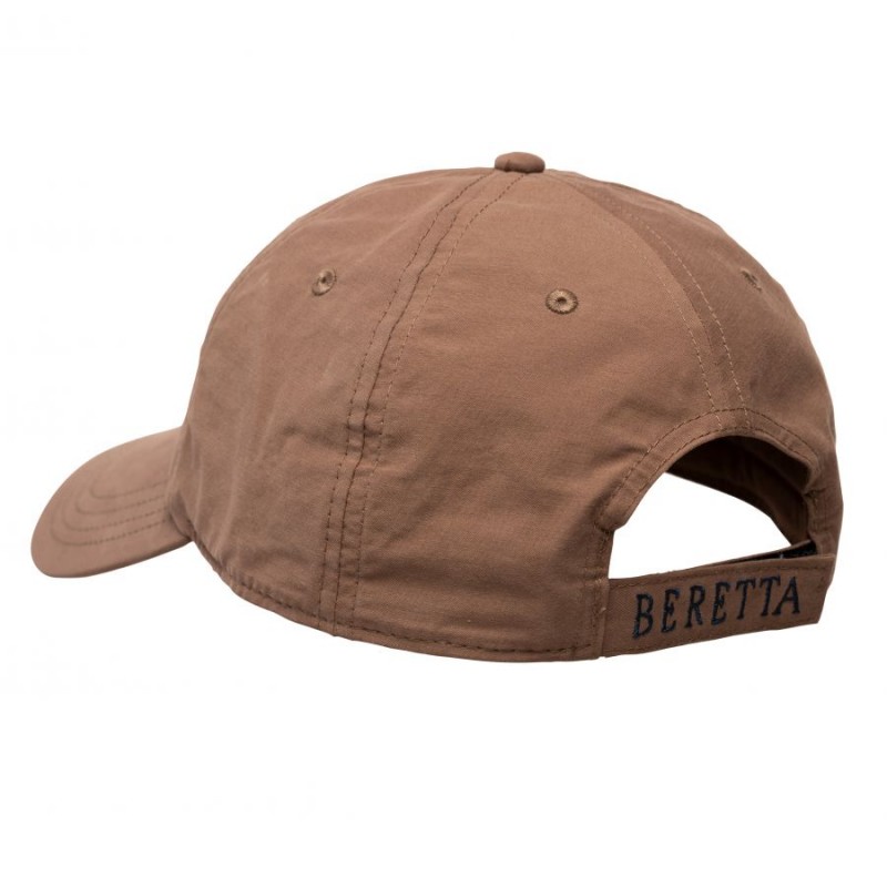 Cechy czapki z daszkiem Beretta:Konstrukcja typu snapback oferująca użytkownikowi możliwość regulacji bez elastycznych elementów, a co za tym idzie brak ucisku. Sprawia to, że czapka może być dokładnie dopasowana do kształtu głowy, bez zjawiska „uszczelnienia” ograniczającego cyrkulację. W pełni bawełniana tkanina jest przyjemna dla skóry głowy nawet podczas wysokich temperatur. Umieszczona na wewnętrznej stronie ściereczka skutecznie wychwytuje i odprowadza pot z czoła.
