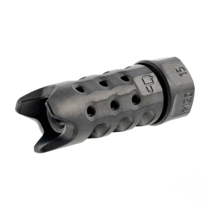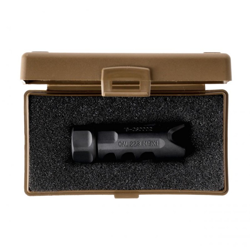 Hamulec wylotowy Audere Quarter Stroke kal. .223 M15x1 został stworzony z myślą o prowadzeniu intensywnego ognia z broni samoczynnej i samopowtarzalnej. Jego trzykomorowa konstrukcja skutecznie ogranicza odrzut jak i podrzut broni pozwalając na szybkie a przy tym precyzyjne strzelanie. Urządzenie pochodzi z linii dedykowanej zastosowaniom taktycznym - od profesjonalnych zastosowań w ramach służb mundurowych po sportowe strzelectwo dynamiczne. Stalowa konstrukcja wykończona powłoką powstałą w procesie azotowania gwarantuje niezwykłą odporność i trwałość urządzenia, które z powodzeniem posłuży nam latami. Wersja dostosowana do broni w kalibrze .223 Rem.