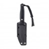 Wykonaną z czarnego kydexu pochwę wyposażono w klips T-Clip. Dzięki temu, po zamocowaniu do paska, można regulować jej położenie zarówno w płaszczyźnie poziomej, jak i pionowej, zależnie od indywidualnych preferencji.