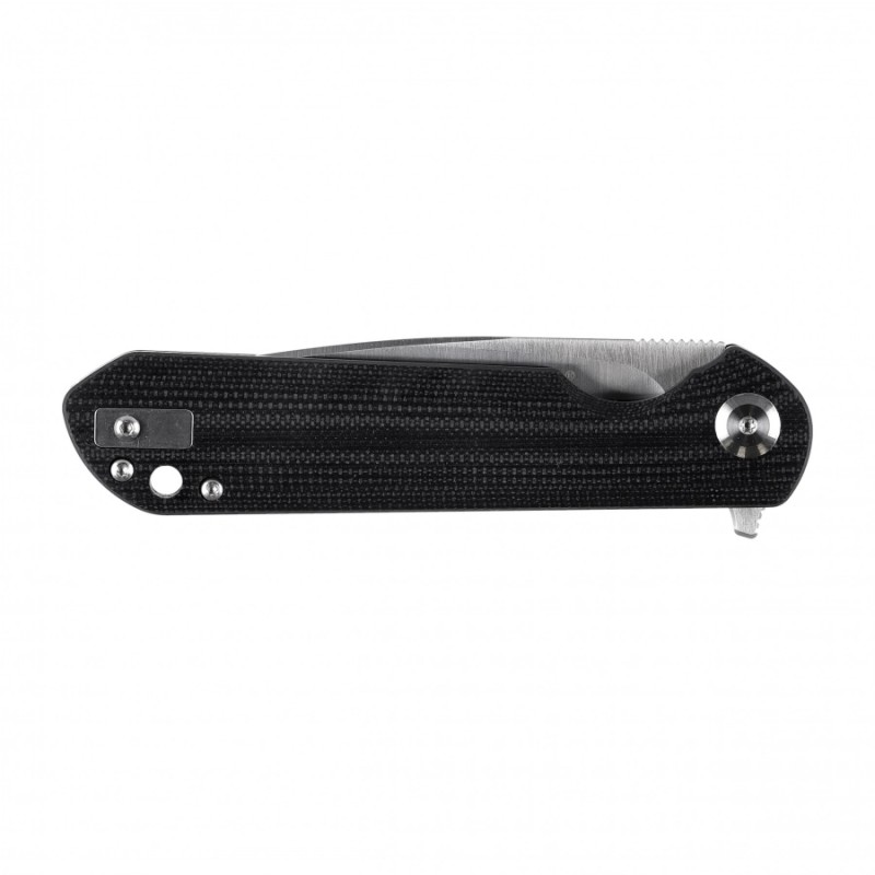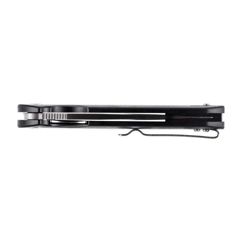 Rękojeść noża tworzą proste okładziny z czarnego laminatu G10, materiału odpornego na udar mechaniczny, wysoką temperaturę oraz działanie niektórych aktywnych substancji chemicznych. Nóż waży zaledwie 101 g, nie obciąża zatem naszej kieszeni i nie powoduje dyskomfortu podczas codziennego przenoszenia.