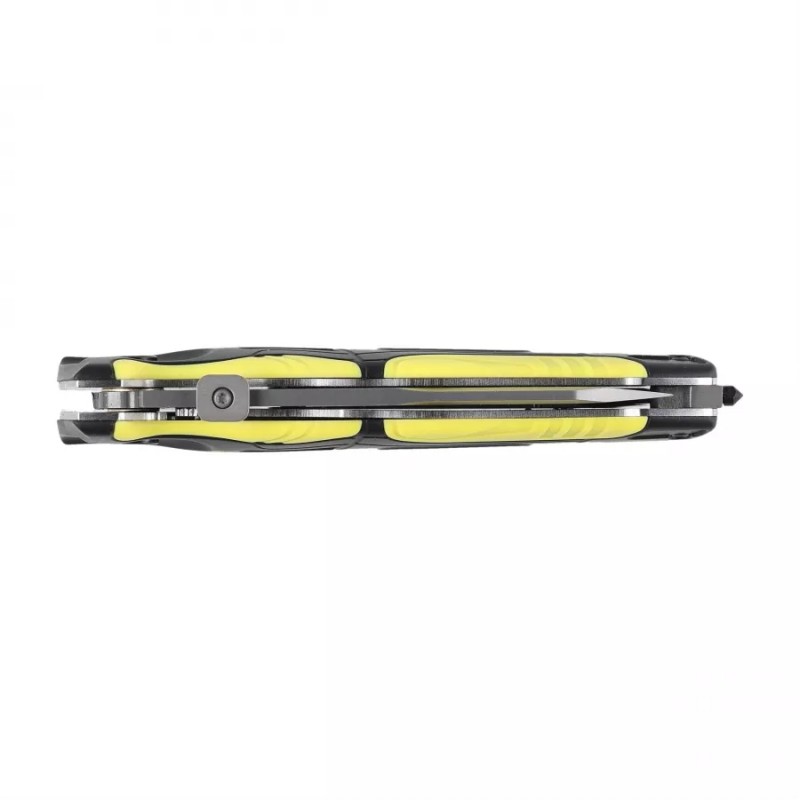 Rolę blokady pełni mechanizm liner-lock, ceniony za wytrzymałość, prostotę i wygodę użytkowania. Za wygodę i wytrzymałość narzędzia odpowiada ergonomiczną rękojeść, którą tworzą gumowane okładziny oraz stalowe wkładki wzmacniające. Na chwycie naniesiono żółte wstawki, które zwiększają widoczność noża warunkach słabego oświetlenia.
